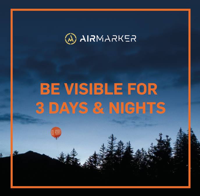 Der AirMarker R.One ist ein einzigartiges System der visuellen Notfallmeldung. In einer robusten Kunststoffbox ist ein rot leuchtender Ballon mit integrierter Lichtquelle untergebracht. Gerät man in eine Notsituation, lässt sich der Airmarker schnell auslösen. Die eingebauten Helium-Zylinder blasen den Ballon in Sekundenschnelle auf, so dass er blitzschnell in die Höhe steigt und dort weithin gut sichtbar ist. Der Ballon blinkt zusätzlich und ist damit auch nachts sichtbar. Mit 3 Tagen Einsatzdauer übersteigt das System gängige Alarmsysteme bei weitem. Der Airmarker findet in jedem Rucksack oder Fahrzeug Platz. Er ist im Handumdrehen einsatzbereit. Die Flughöhe des orange leuchtenden Signalballons lässt sich mit der Leine und durch das Fixieren des Karabiners an der AirMarker-Hülle an Gelände und Witterungsverhältnisse anpassen. Der Karabiner mit dem Elastikband dient auch der Sicherung im Gelände an Ausrüstungsgegenständen, dem Fahrzeug, an einem Baum, Stein oder Seil. Der Ballon kann an der widerstandsfähigen Hightech-Leine auf bis zu 45 Meter Höhe steigen. Dort signalisiert er von weither sichtbar, klar und unmissverständlich, dass jemand Hilfe benötigt: Film auf YouTube
